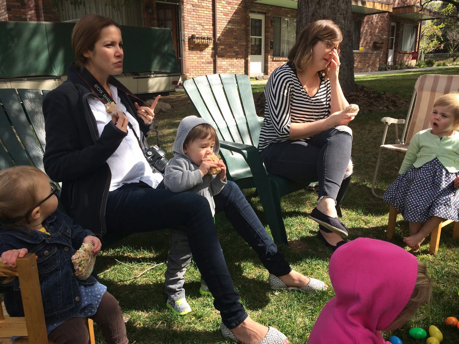 Easter fell on the same day as one of the General Conference days this year. One of my friends was going to the Sunday morning session and needed a babysitter for her little girl. We were happy to take her! She was really easy and sweet and cute and Harper loved having another little person around (as we suspected). She was super attached to me the whole time though and would cry if I left the room. Very endearing. She even fell asleep for a little while.